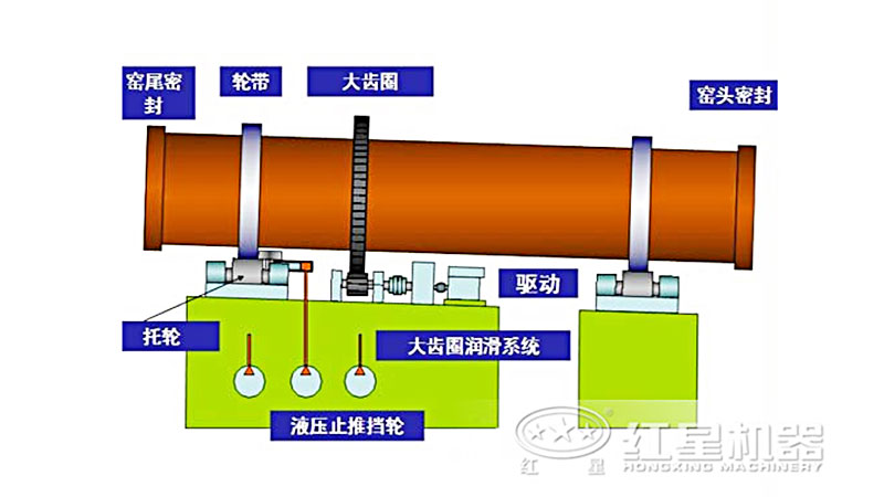 3)窑筒体轴向热膨胀计算,应以设在传动装置附近带挡轮的轮带中心为基准点,向两端膨胀。