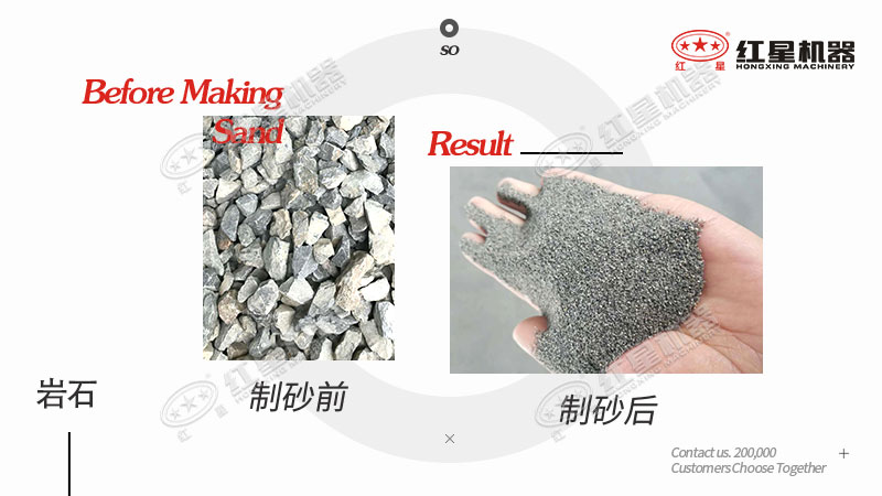 岩石经制砂设备处理前后对比图
