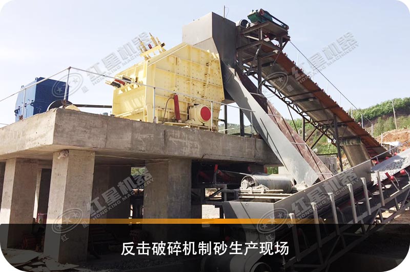 2、振动给料机+反击破碎机+制砂机+筛分机