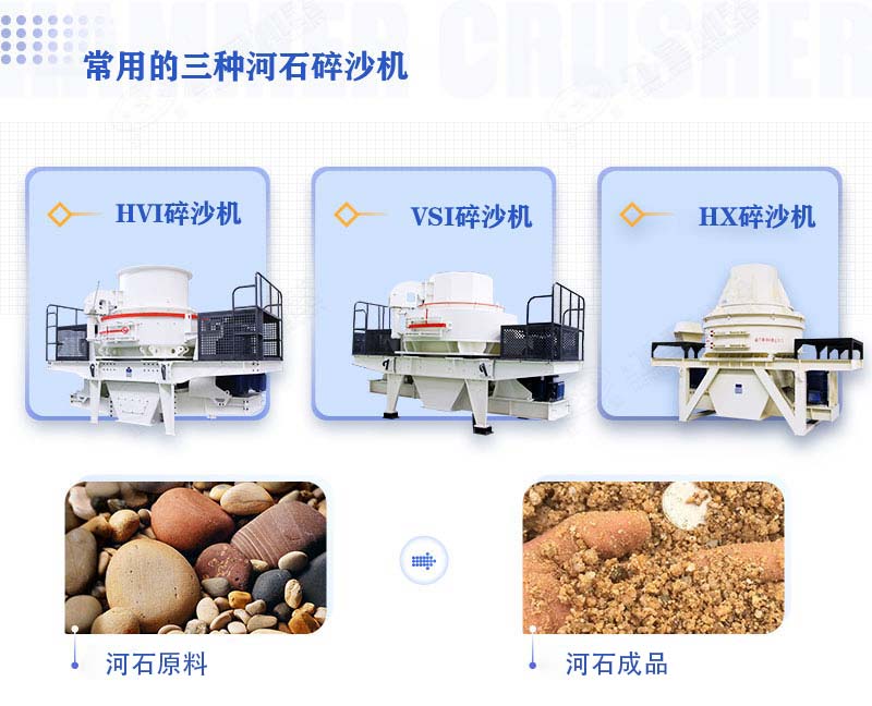 目前市场上的碎沙机有很多,但一般处理像河石一样高硬度的石料,采用的是河石碎沙机,它有三种系列,分别是HX河石碎沙机、VSI河石碎沙机、HVI河石碎沙机,每种系列都有各自的特点,由于每种系列的河石碎沙机采用的技术、生产工艺、产出效率等不同,它们各自的报价就不相同。