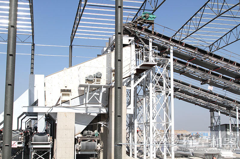 制沙生产线有振动给料机、颚式破碎机、制砂机、振动筛和胶带传输机等设备组合而成。根据不同的工艺要求,各种型号的设备进行组合, 满足客户的不同工艺要求。